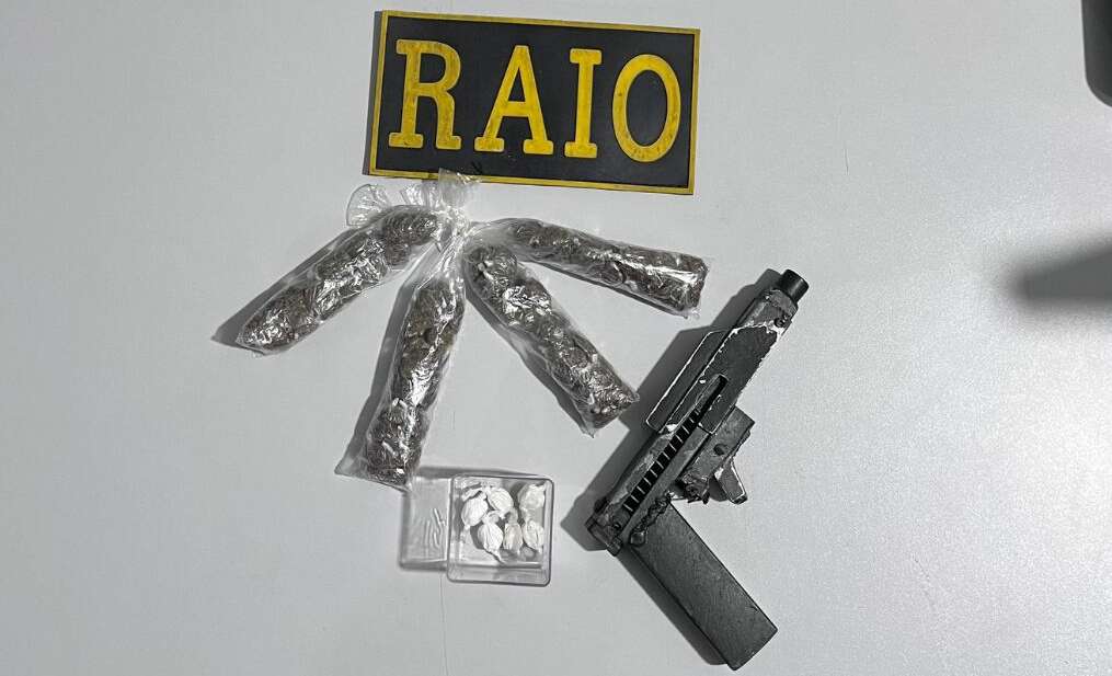 Após ser questionado, o indivíduo autorizou a entrada da equipe no imóvel para averiguação. Durante as buscas, foram encontradas porções de maconha (44,3g) e cocaína (2,7g) no quarto do suspeito. Indagado novamente sobre a arma, ele informou que o objeto estaria escondido em uma área de matagal próxima à residência.