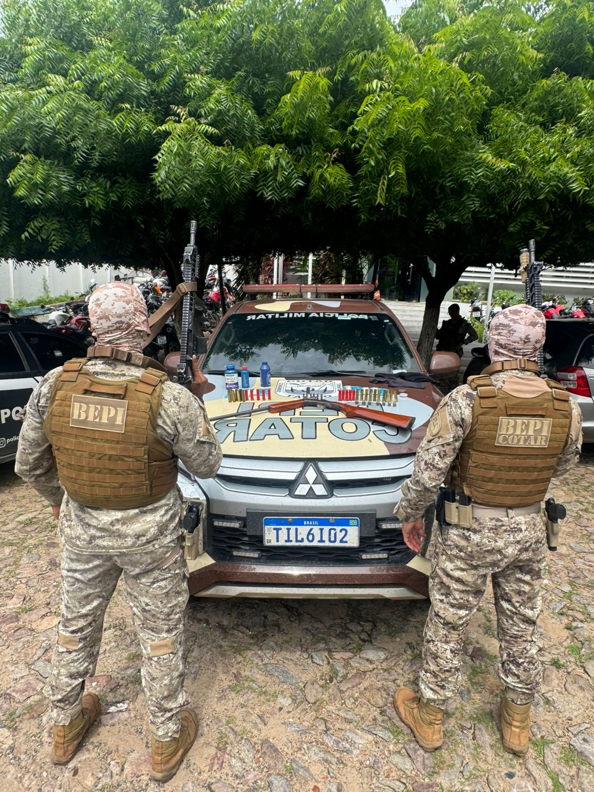 A ação ocorreu após denúncias anônimas recebidas pelo BEPI e informações da Subagência de Inteligência (SAI) do batalhão apontarem que indivíduos armados estariam em uma propriedade rural na região. As equipes se deslocaram ao endereço informado e foram recebidas por um homem de 71 anos, que autorizou a entrada dos policiais para averiguação. Durante a vistoria em um dos imóveis da propriedade, foi localizado o material apreendido em um dos quartos de um duplex situado ao lado da residência principal.
