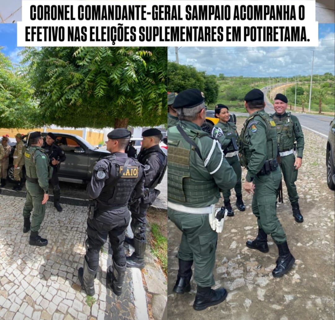 A Polícia Militar do Ceará (PMCE) realiza, neste domingo (1º), o policiamento ostensivo durante as eleições suplementares nos municípios de Choró, Potiretama e Senador Sá. O comandante-geral da PMCE, coronel Sinval Sampaio, acompanha o andamento das ações da corporação em conjunto com os demais órgãos da segurança pública e da Justiça Eleitoral, com a expectativa de um pleito ordenado e seguro para eleitores, mesários e demais envolvidos.