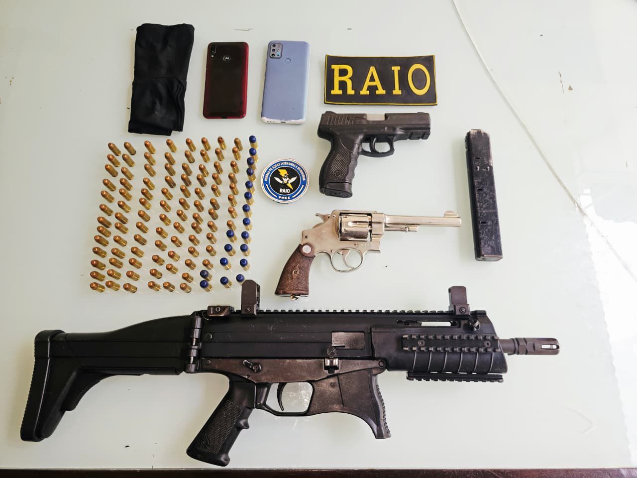 Com o grupo, os policiais apreenderam uma carabina calibre .40, uma pistola Taurus calibre .40 e um revólver calibre .45, além de 113 munições intactas dos calibres .40 e .45. O veículo utilizado pelos suspeitos também foi apreendido.