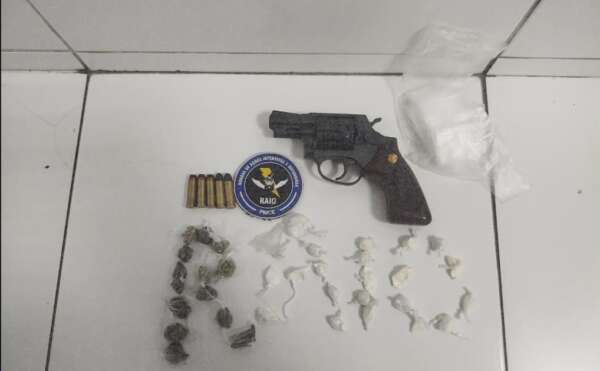 Uma equipe do Comando de Policiamento de Rondas de Ações Intensivas e Ostensivas (CPRaio) da Polícia Militar do Ceará (PMCE) prendeu uma mulher de 25 anos, na noite desse sábado (28), no bairro Lagoa do Tigre Norte, em Novo Oriente. Na ação, foram apreendidos um revólver calibre .38 com numeração suprimida, cinco munições, 20 g de cocaína e 11 g de maconha.