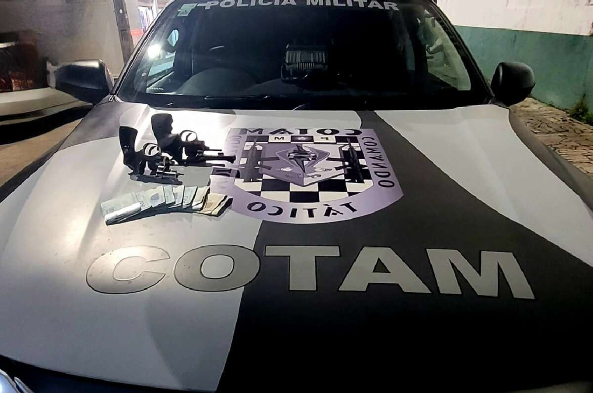 Equipes do Comando Tático Motorizado (Cotam) se deslocaram até a Rua Jandaia, após receberem informações sobre a suposta comercialização de armas de fogo na região.