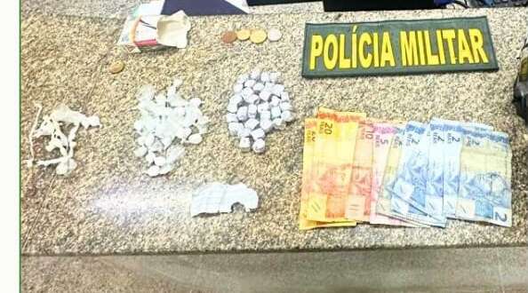 Durante patrulhamento pela rua Uniflor, os policiais visualizaram o suspeito que, ao perceber a aproximação, tentou se desfazer de uma carteira de cigarros contendo porções de cocaína, crack e maconha.