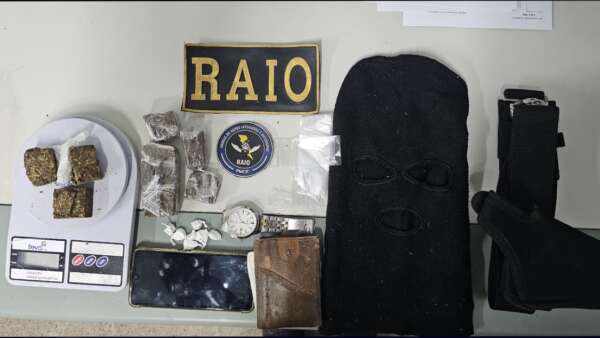 Uma equipe do Comando de Policiamento de Rondas de Ações Intensivas e Ostensivas (CPRaio) da Polícia Militar do Ceará (PMCE) apreendeu 242 gramas de maconha, 2 gramas de cocaína, uma balança de precisão, embalagens para armazenamento, um celular, um coldre, uma balaclava, 13 pássaros silvestres e 13 gaiolas. Durante a ocorrência, um homem de 39 anos foi preso, na noite do último domingo (5), na localidade de Lagoa Seca, zona rural de São Gonçalo do Amarante.
