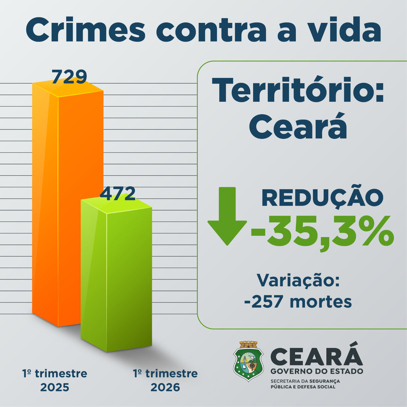 A redução de março de 2026 é o melhor resultado de toda a série histórica de CVLI no estado do Ceará