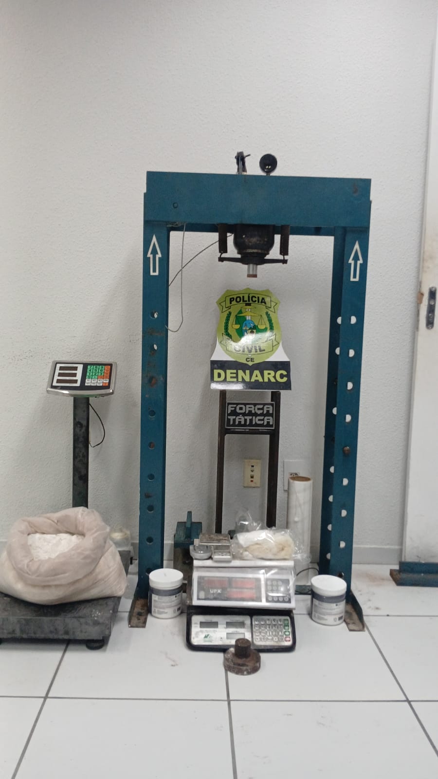 A Polícia Militar do Ceará (PMCE), por meio da 1ª Companhia do 18º Batalhão de Polícia Militar (1ª Cia/18º BPM), realizou, na tarde dessa quarta-feira (8), a apreensão de entorpecentes e de materiais relacionados ao tráfico de drogas no bairro Henrique Jorge, em Fortaleza. A ação ocorreu por volta das 14h, na Rua São Gregório, e resultou na apreensão de aproximadamente 55 gramas de crack, 156 gramas de cocaína e cerca de 10 kg de uma substância em pó branco, além de balanças de precisão e outros objetos utilizados na atividade ilícita. Os suspeitos estão sendo procurados.
