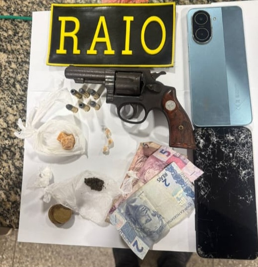 Durante patrulhamento na rua Agapito Ferreira, a equipe recebeu denúncias indicando um ponto de venda de drogas em um prédio na via mencionada. Ao chegar ao local, os policiais visualizaram uma mulher de 23 anos que, ao perceber a presença da patrulha, tentou fugir e adentrou o imóvel suspeito. No interior do prédio, os militares localizaram um revólver calibre .32 com seis munições intactas, além de pequenas quantidades de crack (3,8 gramas), cocaína (1,2 gramas) e maconha. Também foram encontrados R$ 13,00 em espécie. Dois outros indivíduos, sendo um adolescente de 17 anos e uma jovem de 20, foram encontrados no local.