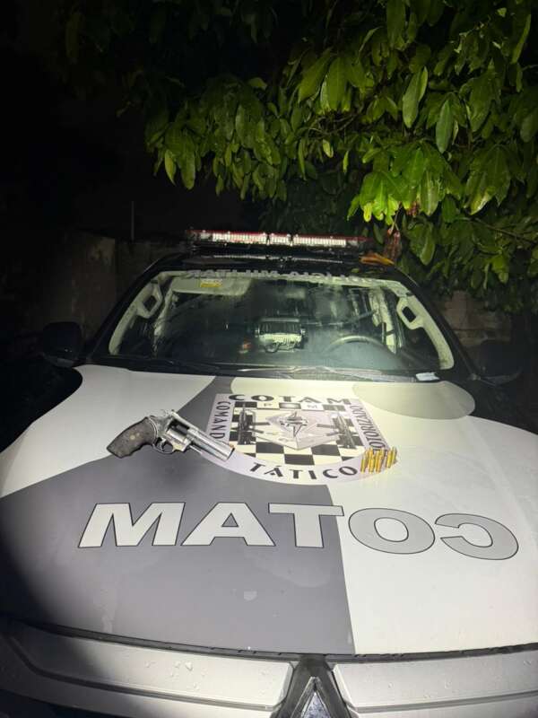 A ocorrência teve início após uma denúncia informando a presença de indivíduos supostamente ligados a grupo criminoso na área. De imediato, a equipe do Cotam se deslocou ao endereço indicado. No local, um homem permitiu a entrada dos militares em sua residência para averiguação. Durante a abordagem, o comportamento nervoso do suspeito levantou suspeitas. Diante disso, os policiais realizaram buscas no imóvel, quando localizaram, no quarto do indivíduo, um revólver calibre .38 e nove munições intactas escondidos sob a cama.