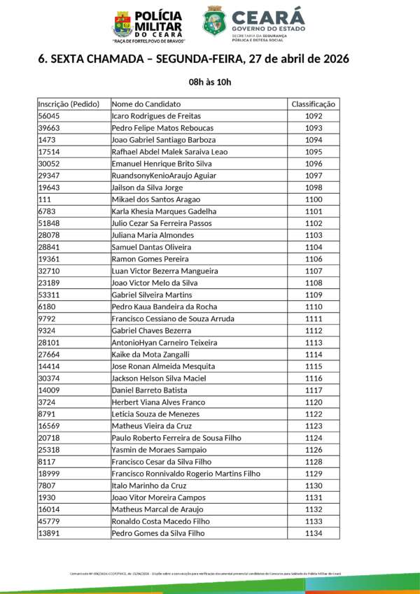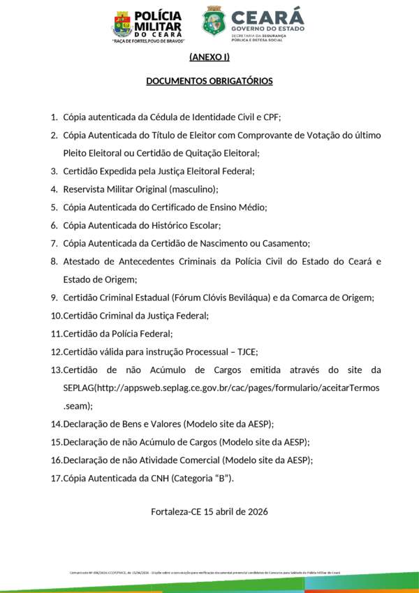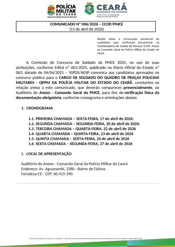 COMUNICADO Nº 006/2026 – CCOP/PMCE (15 de abril de 2026)