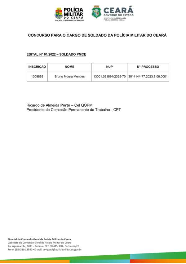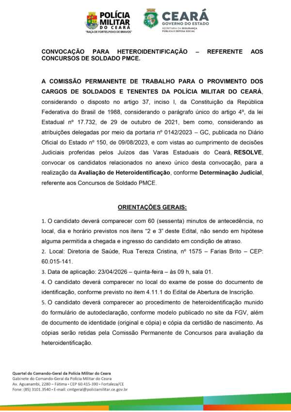 CONVOCAÇÃO PARA HETEROIDENTIFICAÇÃO – REFERENTE AOS CONCURSOS DE SOLDADO PMCE