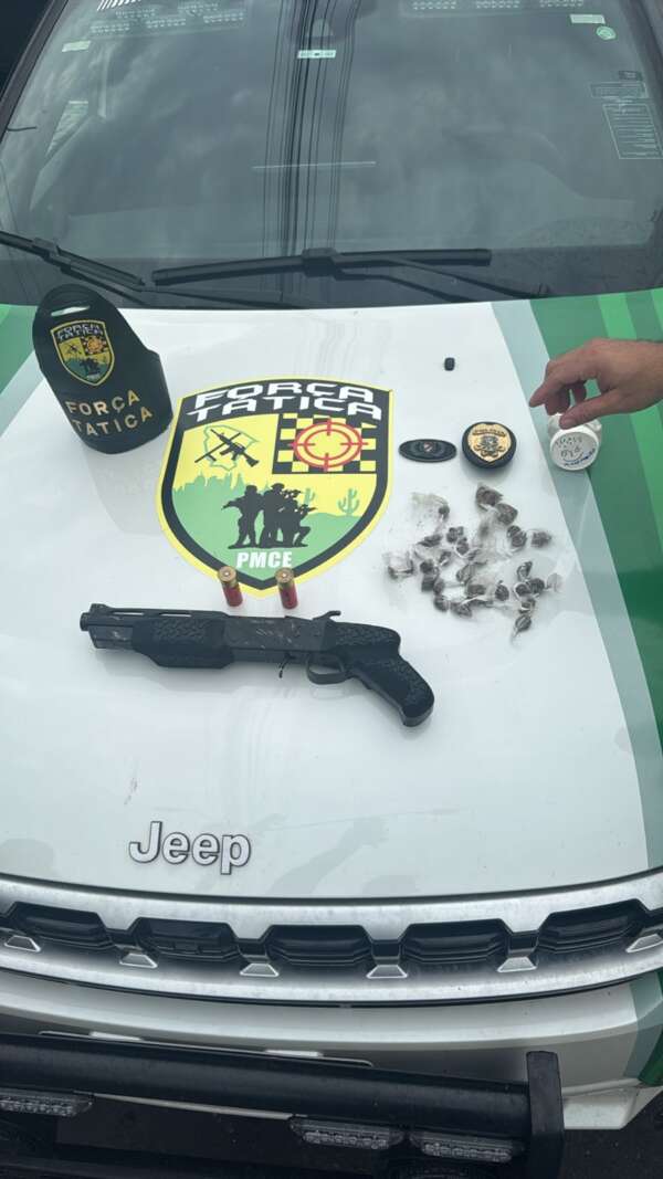 Uma equipe da Força Tática da 2ª Companhia do 12º Batalhão da Polícia Militar do Ceará (PMCE) apreendeu uma espingarda calibre 12, duas munições intactas do mesmo calibre e 26 gramas de maconha, na tarde desse domingo (19), na rua José de Freitas, no bairro Camurupim, em Caucaia.