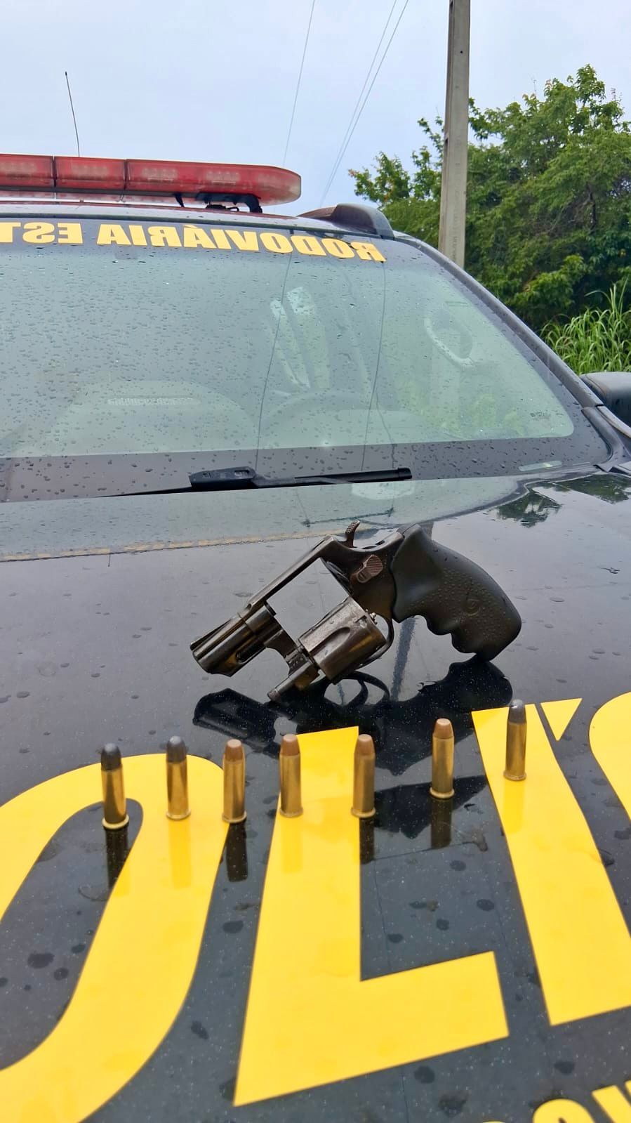 No momento da abordagem, o condutor apresentou nervosismo, o que motivou uma busca mais detalhada no veículo. Durante a verificação, os policiais localizaram um revólver calibre .38 com sete munições intactas, que estava sobre o banco traseiro.