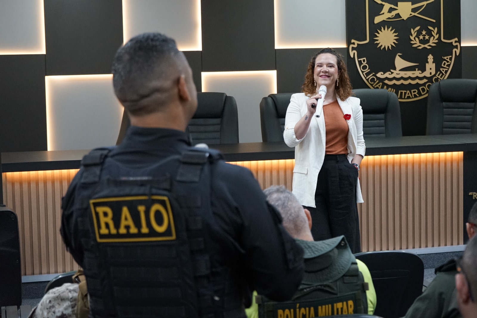 A Polícia Militar do Ceará, por meio da Diretoria de Planejamento e Gestão Interna (DPGI), realizou, na manhã desta quinta-feira (23), uma palestra com o tema “Integridade nas Contratações Públicas”, no auditório do Anexo do Quartel do Comando-Geral, em Fortaleza. O evento reuniu oficiais e praças de diversas unidades, oficiais da alta gestão da Corporação e representantes de órgãos parceiros, com o objetivo de fortalecer a governança institucional e disseminar boas práticas na administração pública. A palestra contou com as palavras iniciais do diretor da DPGI, coronel Narcélio, e o Coordenador da Coordenadoria Administrativo-Financeira (Coafi), tenente-coronel Alexandre Torres. A palestra ficou a cargo da secretária de integridade da Companhia de Desenvolvimento dos Vales do São Francisco e do Parnaíba (Codevasf), Renila Bragagnoli.
