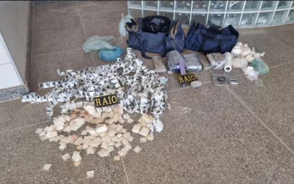 No decorrer das buscas no interior do apartamento, os militares localizaram duas bolsas contendo os entorpecentes, além de duas balanças de precisão e materiais utilizados para fracionamento das drogas.
