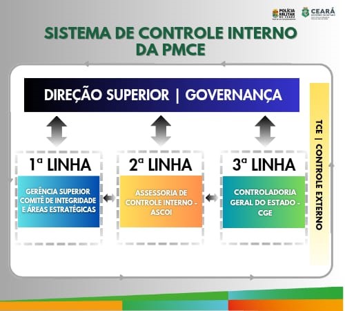 A Polícia Militar do Estado do Ceará adotou as medidas necessárias para a sistematizar as boas práticas relacionadas aos controles internos, identificando as competências da Assessoria de Controle Interno – ASCOI/PMCE (Unidade Setorial de Controle Interno), na forma do Inciso V, do Art. 2º, da Lei Complementar Estadual nº 309/2023, sendo parte integrante do Sistema de Controle Interno do Poder Executivo Estadual, exercido de forma descentralizada e estruturado no modelo de três linhas, na forma do § 1º, Art. 3º da Lei Complementar Estadual nº 309/2023.